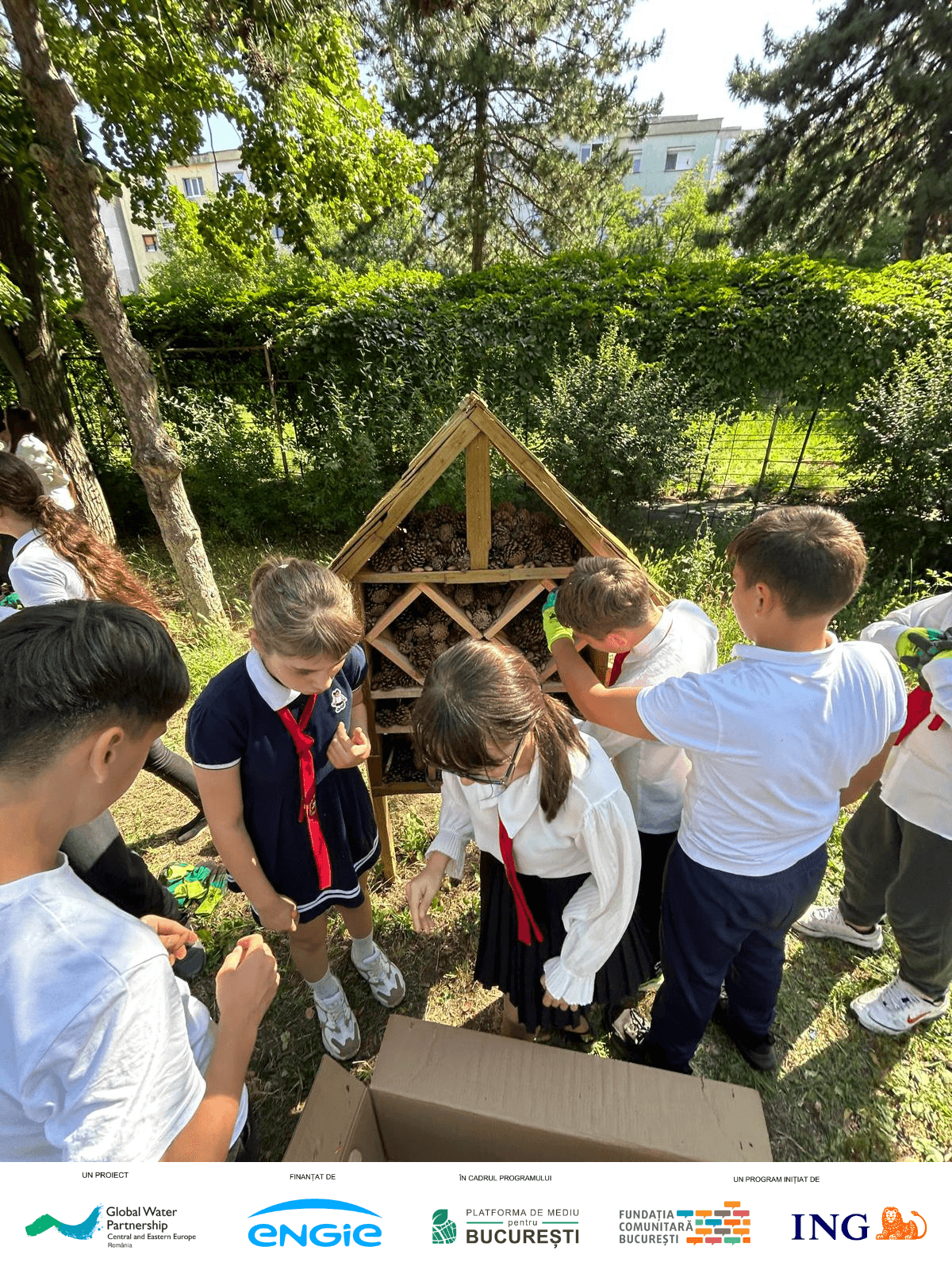 Aceste „case pentru insecte” nu doar că susțin viața polenizatorilor, dar au și un rol educativ: elevii pot observa direct activitatea insectelor și pot învăța despre rolul lor în natură.